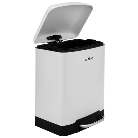 Ведро мусорное с педалью 6 л, крышка с доводчиком, белое матовое, металл, LAIMA ULTRA, 701569