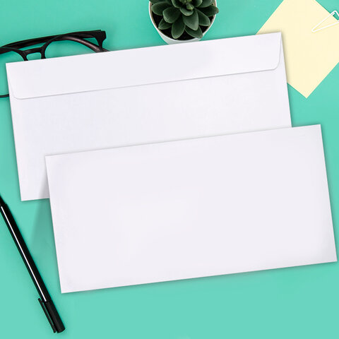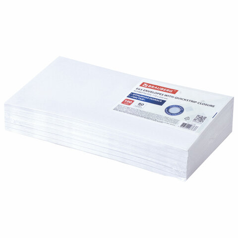 Конверты Е65 (110х220 мм), отрывная лента, внутренняя запечатка, КОМПЛЕКТ 100 шт., BRAUBERG, 112193