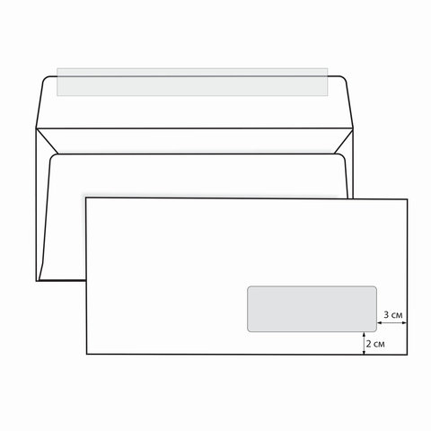 Конверты Е65 (110х220 мм) ПРАВОЕ ОКНО, отрывная лента, 80 г/м2, КОМПЛЕКТ 1000 шт., 41391
