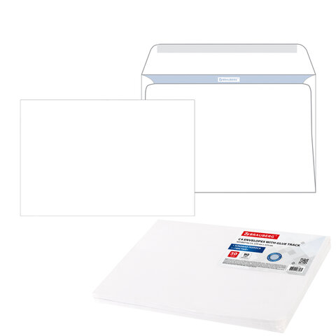 Конверты С4 (229х324 мм), клеевой слой, внутренняя запечатка, 90 г/м2, КОМПЛЕКТ 50 шт., BRAUBERG, 112176