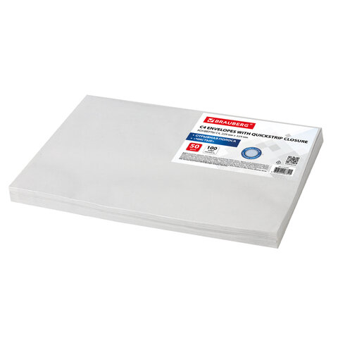 Конверты С4 (229х324 мм), отрывная лента, внутренняя запечатка, 100 г/м2, КОМПЛЕКТ 50 шт., BRAUBERG, 112181