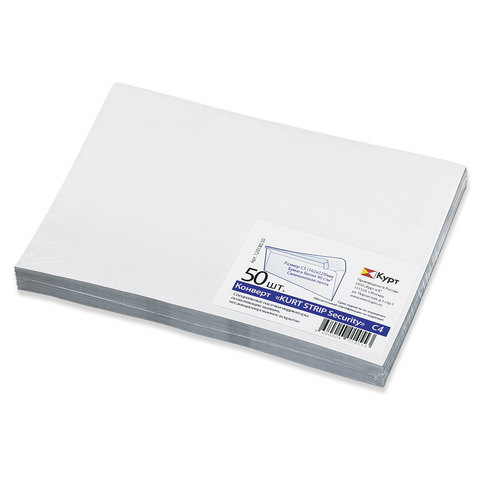 Конверты С4 (229х324 мм) SECURITY, отрывная лента, 100 г/м2, КОМПЛЕКТ 50 шт., внутренняя запечатка, 120180.50