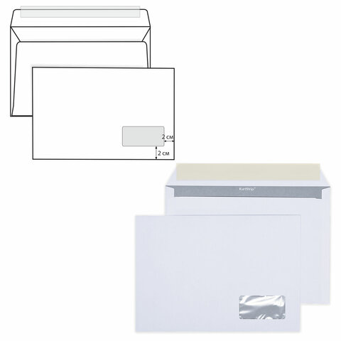 Конверты С5 (162х229 мм) ПРАВОЕ ОКНО, отрывная лента, 80 г/м2, КОМПЛЕКТ 1000 шт., внутренняя запечатка С5.03СО