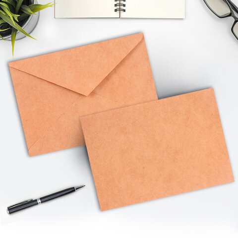 Конверты С6 (114х162 мм) КРАФТ, клей, 90 г/м2, КОМПЛЕКТ 50 шт., треугольный клапан, BRAUBERG, 112363