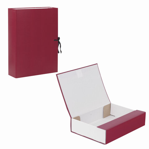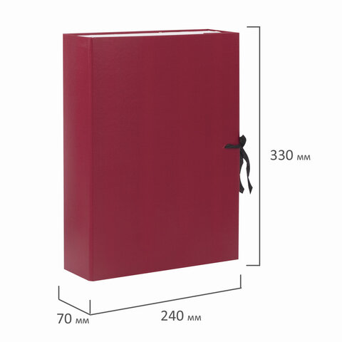 Короб архивный А4 (240х330 мм), 70 мм, 2 завязки, бумвинил, до 600 листов, бордовый, BRAUBERG, 122036