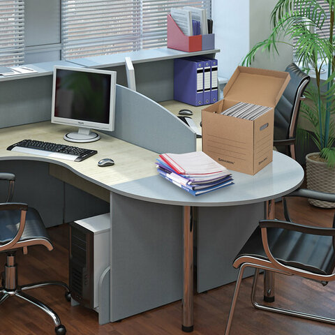 Архивный короб "Делопроизводство" BRAUBERG предназначен для хранения и перевозки документов в скоросшивателях, накопителях, папках-регистраторах. Изготовлен из 100% первичной целлюлозы марки Т-24, профиль «В».
