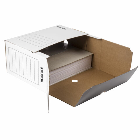 Короб архивный с клапаном А4 (260х325 мм), 150 мм, до 1400 листов, микрогофрокартон, БЕЛЫЙ, STAFF, 128866