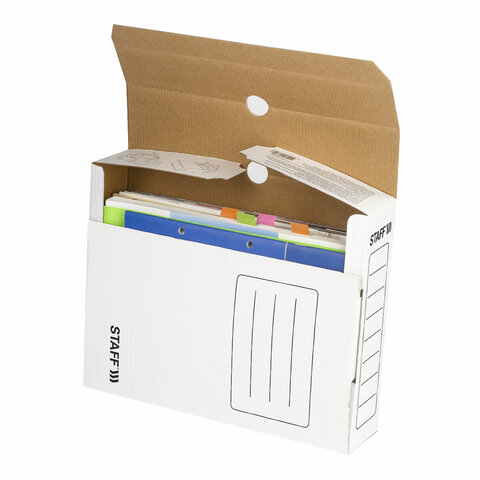 Короб архивный с клапаном А4 (260х325 мм), 75 мм, до 700 листов, микрогофрокартон, БЕЛЫЙ, STAFF, 128858