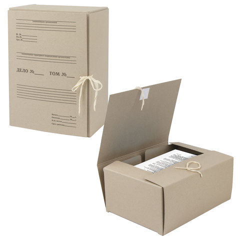 Короб архивный STAFF, 150 мм, переплетный картон, 2 хлопчатобумажные завязки, до 1400 листов, 110931