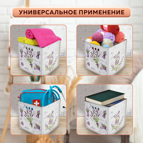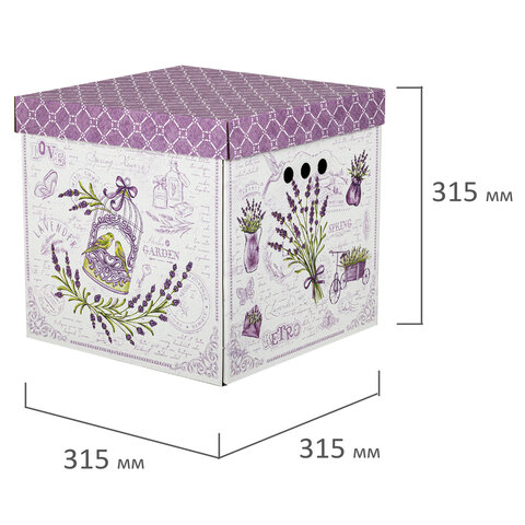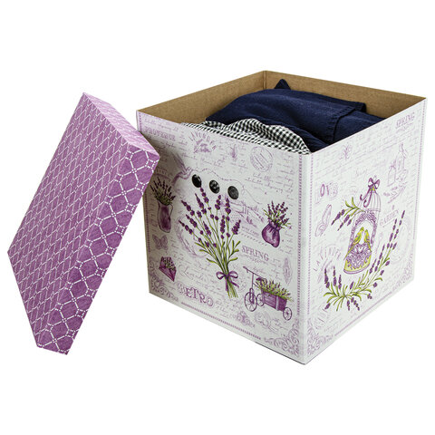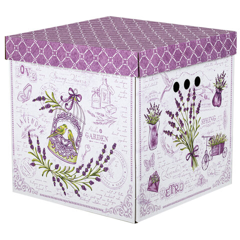 Короб для хранения из плотного микрогофрокартона 315х315х315 мм, КОМПЛЕКТ 3 шт., BRAUBERG HOME "Лаванда", 271817