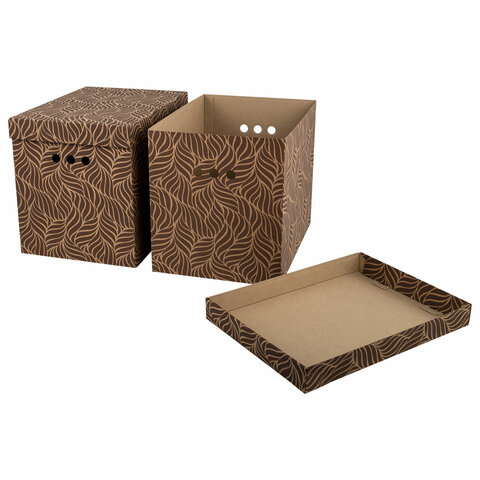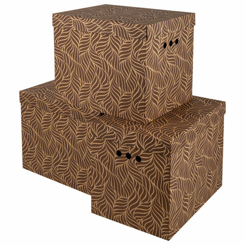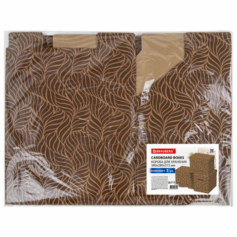 Короб для хранения из плотного микрогофрокартона 380х280х315 мм, КОМПЛЕКТ 3 шт., BRAUBERG HOME "Узор", 271824
