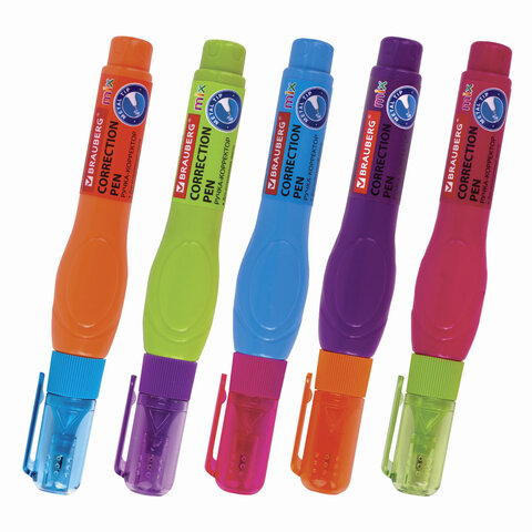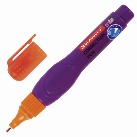 Ручка-корректор BRAUBERG MIX для наиболее аккуратного и точного исправления печатного и рукописного текста. Надежный металлический наконечник обеспечивает экономичный расход корректирующей жидкости.