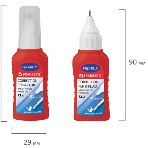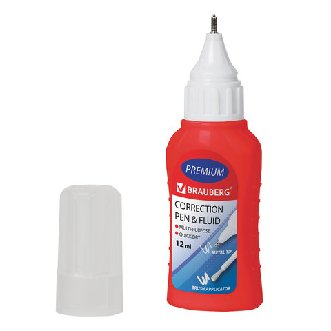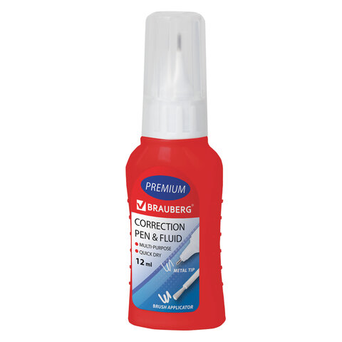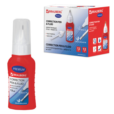Корректирующая жидкость на быстровысыхающей основе BRAUBERG "2 в 1" справится с любыми недочетами в рукописных документах.
