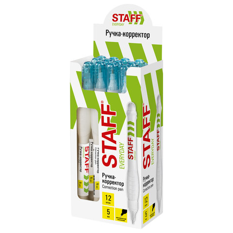 Ручка-корректор STAFF "EVERYDAY", 5 мл, металлический наконечник, круглый корпус, 227567