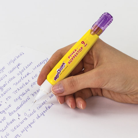 Корректирующая ручка ЮНЛАНДИЯ идеальна для школы, учебных учреждений и офиса. Исправляет как рукописный и печатный текст на любых типах бумаги.