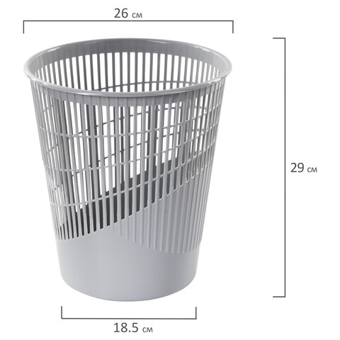 Корзина для бумаг, 11 л, сетчатая, серая, BRAUBERG, 230442