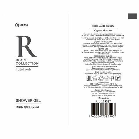 Гель для душа одноразовый 10 мл, КОМПЛЕКТ 500 шт., GRASS ROOM, саше, флоупак, HR-5030