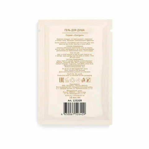 Гель для душа одноразовый 10 мл, КОМПЛЕКТ 500 шт., GRASS SARGAN, саше, флоупак, 125209