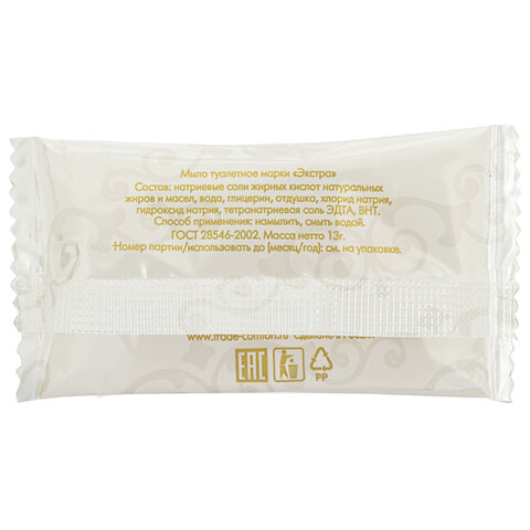 Мыло одноразовое 13 г, КОМПЛЕКТ 500 шт., HOTEL, саше, флоупак, 2000115