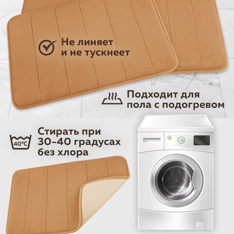 Набор антискользящих ковриков для ванной и туалета, спальни, гостиной с эффектом памяти – идеальный вариант аксессуара для создания уюта и комфорта. Универсальный размер для ванной (50х80 см) и туалета (40х60 см).