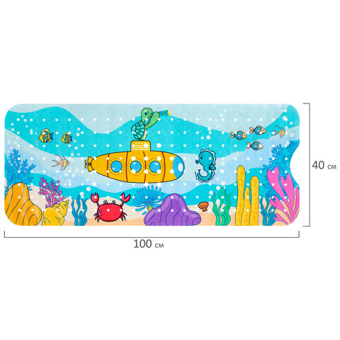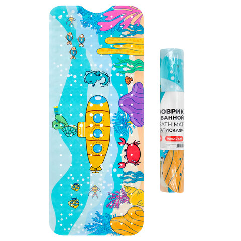 Коврик для ванны противоскользящий 100х40 см с рисунком "Батискаф", ПВХ, присоски, PRIMILA (ПРИМИЛА), 700378