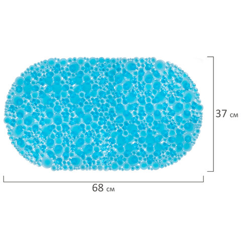 Коврик для ванны противоскользящий 68х37 см, "Пузыри", овальный, прозрачно-голубой, ПВХ, PRIMILA (ПРИМИЛА), 700381