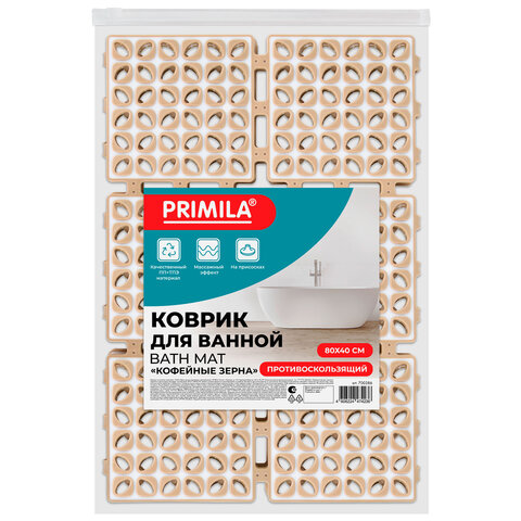 Коврик для ванны противоскользящий износостойкий 80х40 см, "Кофейные зерна", ПП + ТПЭ, PRIMILA (ПРИМИЛА), 700386