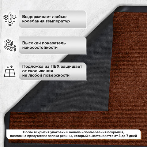 Коврик ДОРОЖКА 0,9х10 м, КОРИЧНЕВЫЙ, влаго-грязезащита, 430 г/м2, ребристая, LAIMA EXPERT, 701044