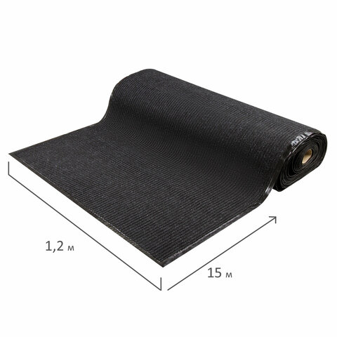 Коврик дорожка ворсовый влаго-грязезащита 1,2х15 м, толщина 7 мм, черный, В РУЛОНЕ, LAIMA, 602883