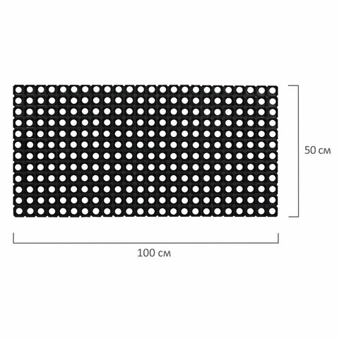 Коврик входной резиновый крупноячеистый грязезащитный, 50х100 см, толщина 16 мм, черный, VORTEX