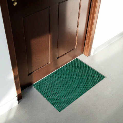 Коврик придверный 45х60 см, ЗЕЛЕНЫЙ пластиковый грязезащитный, толщина 10 мм, "ТРАВКА", PRIMILA (ПРИМИЛА), 701065