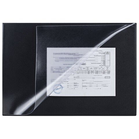 Коврик-подкладка настольный для письма (590х380 мм), с прозрачным карманом, черный, BRAUBERG, 236774