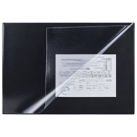 Коврик-подкладка настольный для письма (650х450 мм), с прозрачным карманом, черный, BRAUBERG, 236775