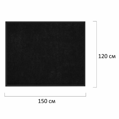 Коврик придверный 120х150 см, ЧЕРНЫЙ, влаго-грязезащитный, 430 г/м2, ребристый, ЛЮБАША СТАНДАРТ, 701040