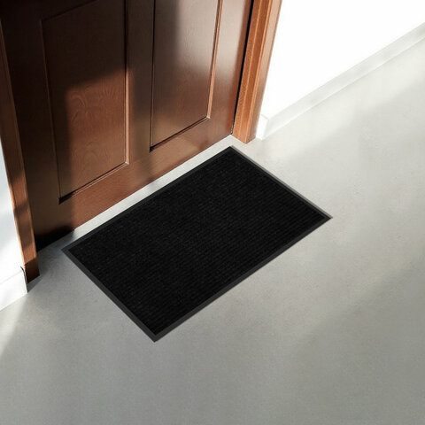 Коврик придверный 50х80 см, ЧЕРНЫЙ, влаго-грязезащитный, 430 г/м2, ребристый, ЛЮБАША СТАНДАРТ, 701032