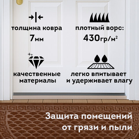 Коврик придверный 60х90 см, ВЕНГЕ, грязезащитный, 430 г/м2, ПОЛУКРУГ, фактурный ЧЕШУЙКИ, ЛЮБАША, 701053