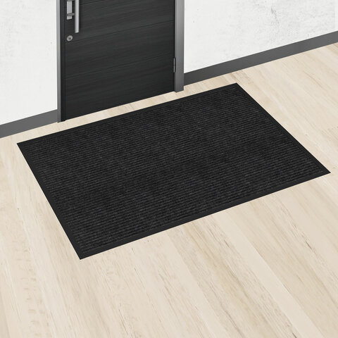 Коврик придверный 80х120 см, ЧЕРНЫЙ, влаго-грязезащитный, 450 г/м2, ребристый, PRIMILA (ПРИМИЛА) EXTRA, 701030