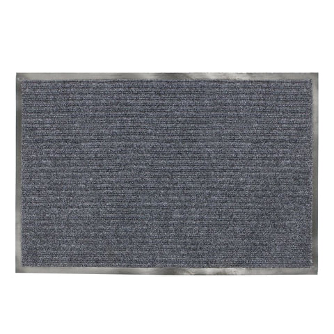 Коврик входной ворсовый влаго-грязезащитный 90х120 см, толщина 7 мм, ребристый, серый, LAIMA, 602872