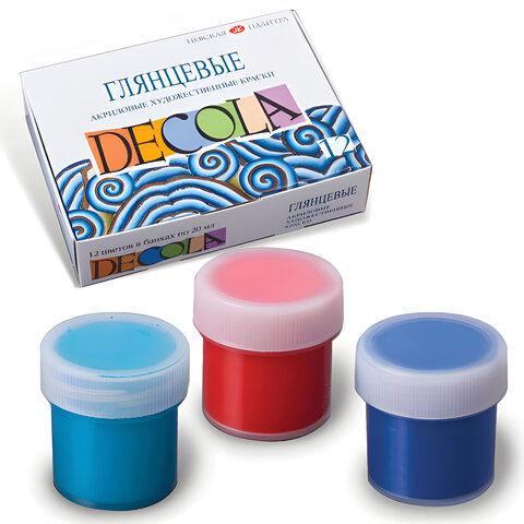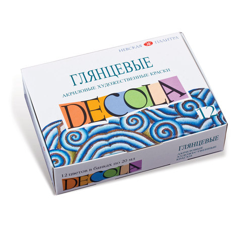Краски акриловые художественные глянцевые "Декола", 12 цветов по 20 мл, в баночках, Невская Палитра, 2941116