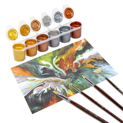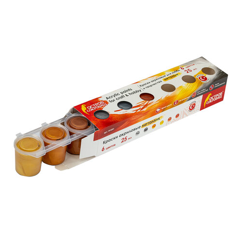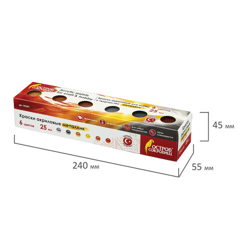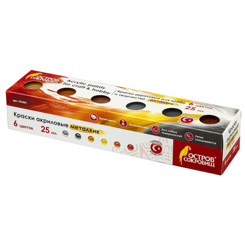 Краски акриловые МЕТАЛЛИК для рисования и хобби ОСТРОВ СОКРОВИЩ 6 цветов по 25 мл, 191691