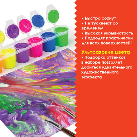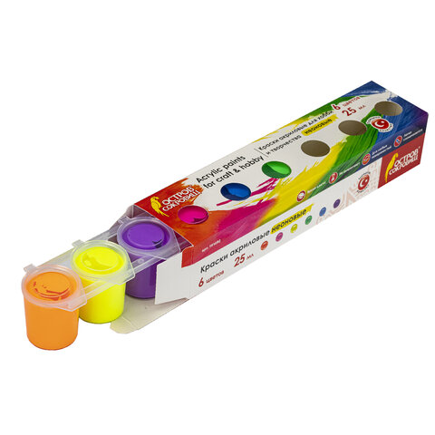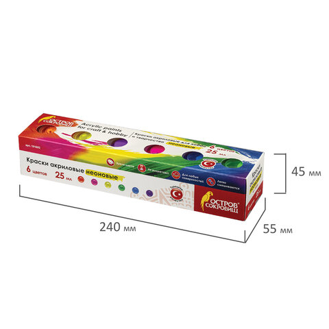 Краски акриловые НЕОН для рисования и хобби ОСТРОВ СОКРОВИЩ 6 цветов по 25 мл, 191692
