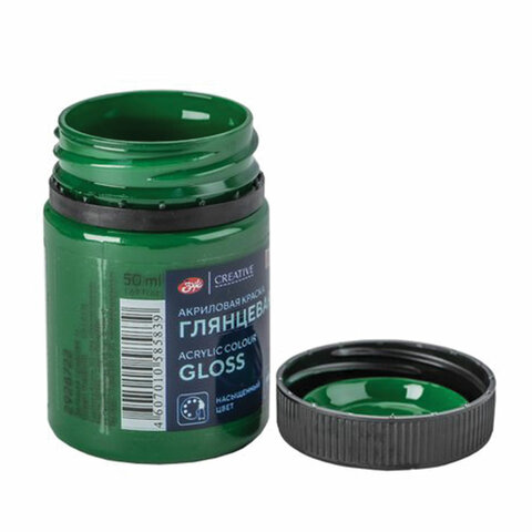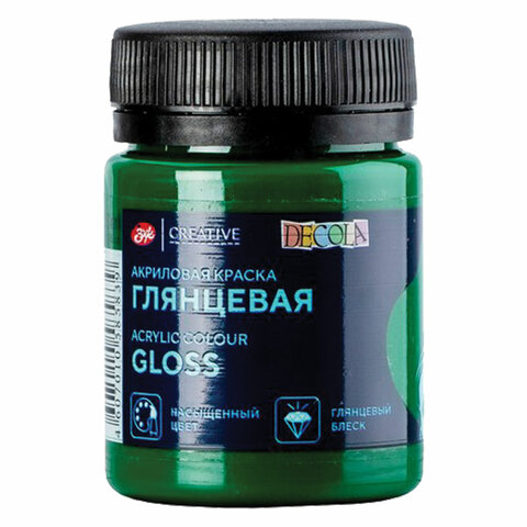 Краска акриловая глянцевая "Декола", банка 50 мл, зеленая средняя, Невская Палитра, 2928722