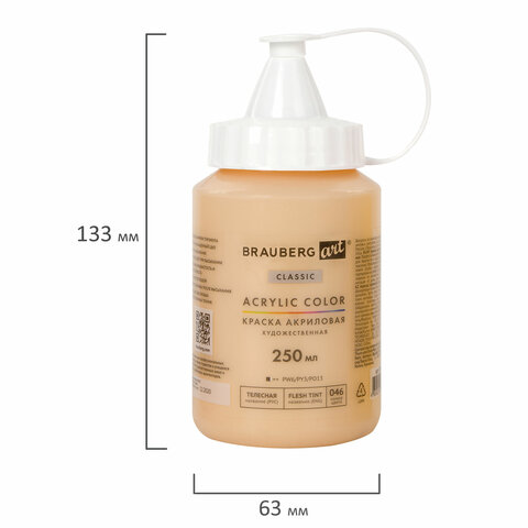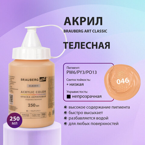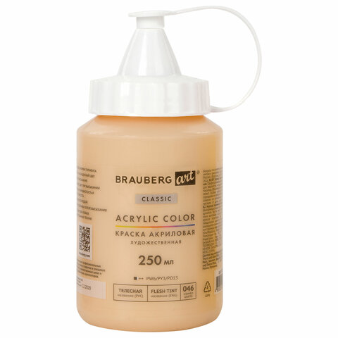 Краска акриловая художественная BRAUBERG ART CLASSIC, флакон 250 мл, ТЕЛЕСНАЯ, 191708