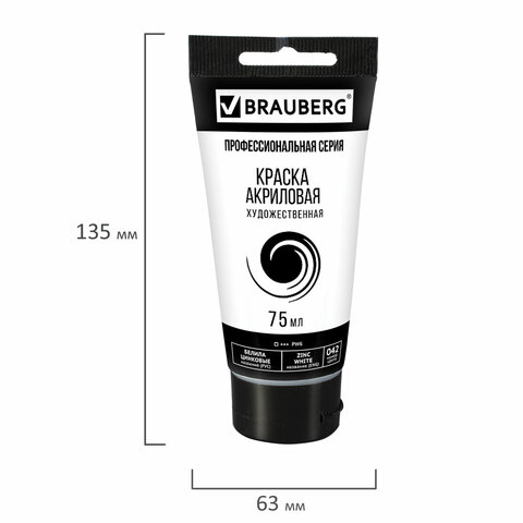 Краска акриловая художественная BRAUBERG ART CLASSIC, туба 75 мл, БЕЛИЛА ЦИНКОВЫЕ, 191587