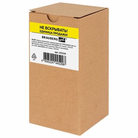 Краска акриловая художественная ГЛЯНЦЕВАЯ, 500 мл в банке, белила титановые, BRAUBERG ART, 192539