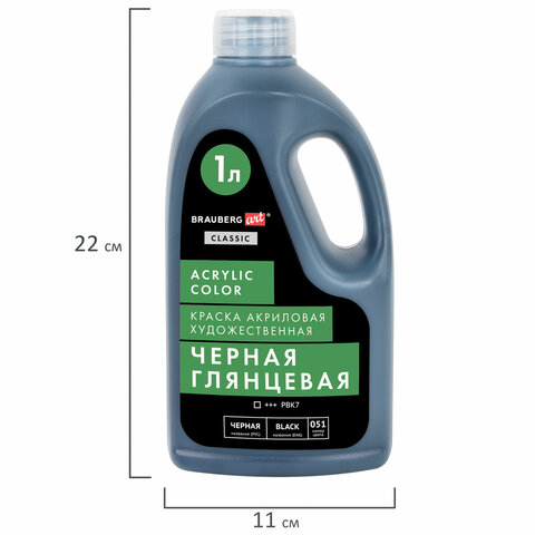 Краска акриловая художественная ГЛЯНЦЕВАЯ черная 1000 мл бутыль, BRAUBERG ART CLASSIC, 192542