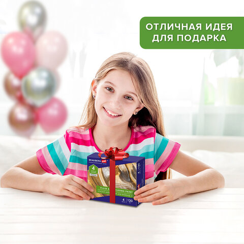 Краски акриловые для техники "Флюид Арт" (POURING PAINT), 4 цвета по 120 мл, Цвета металлик, BRAUBERG ART, 192239