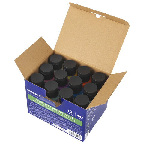 Краски акриловые для техники "Флюид Арт" (POURING PAINT), НАБОР 12 цветов по 60 мл, BRAUBERG ART CLASSIC, 192236
