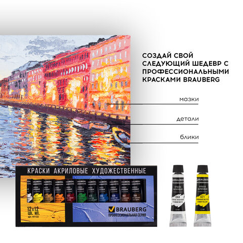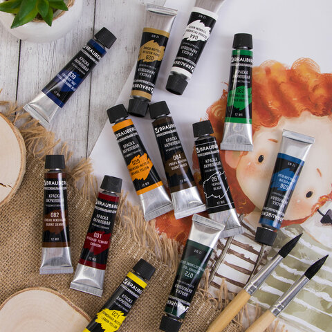 Художественные акриловые краски BRAUBERG ART "CLASSIC" предназначены для живописи и декоративных работ. Профессиональная серия.