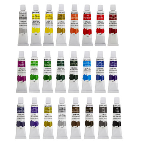 Краски акриловые художественные BRAUBERG ART DEBUT, НАБОР 24 цвета по 12 мл, в тубах, 191127